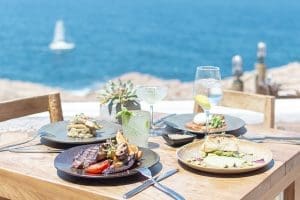 Hostal La Torre es un refugio relajado ubicado en la costa oeste de Ibiza y uno de los lugares más mágicos de la isla para ver la puesta de sol de fama mundial. La terraza y el restaurante son el corazón del hotel con su ambiente relajado, deliciosa cocina mediterránea, carta de vinos españoles y cócteles creativos. El menú incluye tapas españolas para compartir, tanto las favoritas tradicionales como las nuevas creaciones, ensaladas ligeras, mariscos frescos y abundantes platos de carne.