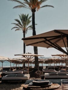 «Pack Baleares 320€» incluye servicio de agua, plato fruta, botella de Champagne rosado y toallas.