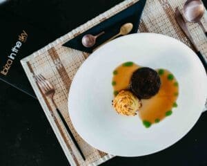 Disfruta de una selección de tapas creativas en el cielo. Bebida de bienvenida, refresco, un vaso de vino o una cerveza y menú de 6 tapas incluidos.