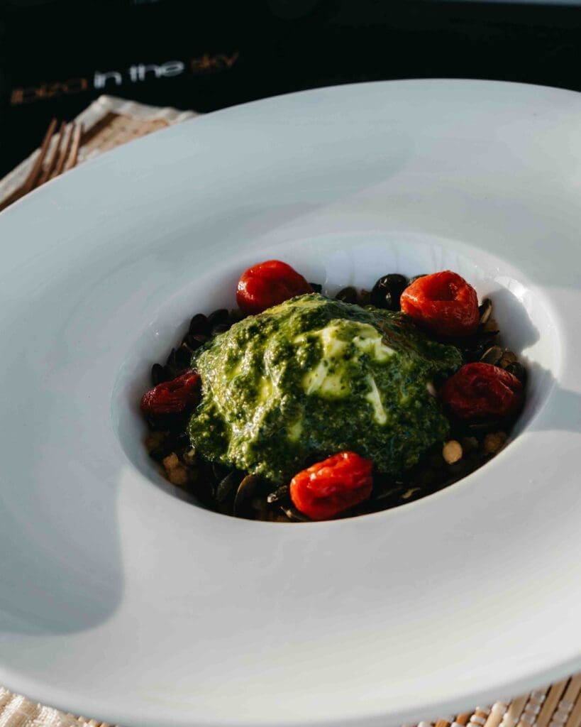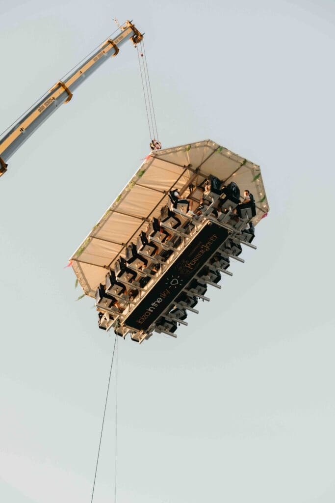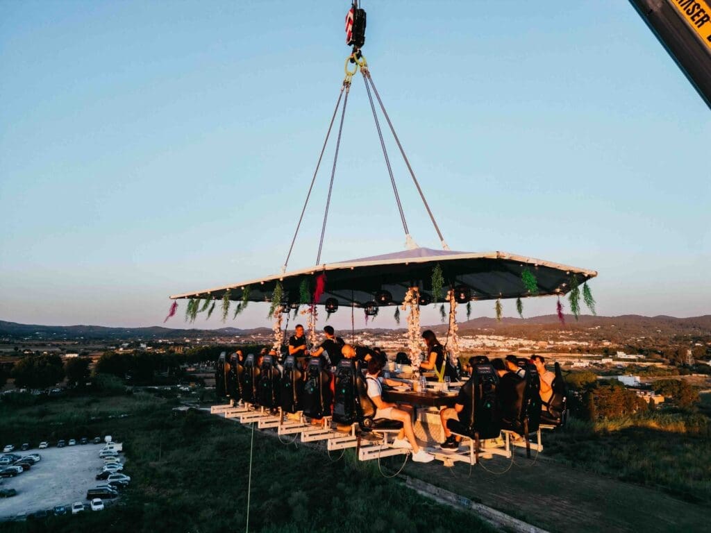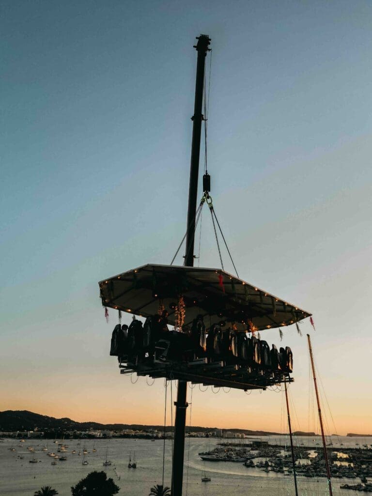 Ibiza in the Sky es el concepto gastronómico más único del mundo. Utiliza una grúa para elevar una plataforma especial con 22 invitados más el personal, hasta 50 metros en el cielo despejado de Ibiza, ofreciendo una experiencia gastronómica exclusiva con vistas al atardecer de la Bahía de San Antonio. Ibiza in the Sky ofrece 3 experiencias diferentes: tapas in the sky, dinner in the sky y DJ & cocktails in the sky.