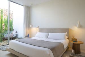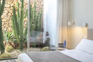 Ca Na Xica está en la zona norte de la isla de Ibiza, cerca del tranquilo pueblo de Sant Miquel de Balansat, en un entorno donde el paisaje agrícola es la nota dominante. Campos labrados, árboles frutales, huertas y grandes espacios abiertos brindan una conexión directa con la naturaleza más relajante. Rodeado de cultivos sostenibles, Ca Na Xica combina a la perfección la tradicional construcción ibicenca de la casa principal con la arquitectura más innovadora de las nuevas suites de diseño. El escenario perfecto para sumergirse en una experiencia única que combina relax, gastronomía y naturaleza a partes iguales. La excusa perfecta para dejarse llevar por los placeres esenciales de la vida mediterránea. En Ca Na Xica tenemos muy claro que la calidad medioambiental es esencial para proporcionar a nuestros clientes una experiencia plenamente satisfactoria y ecológicamente sostenible. Para ello implementamos un amplio decálogo de prácticas respetuosas con el medio ambiente y nuestro entorno orientadas a su preservación y cuidado. Usamos placas solares, generando así nuestra propia energía verde. Contamos con agua de pozo propio además de la filtración de todas las aguas utilizadas en nuestras instalaciones para su tratamiento y posterior uso como agua de riego en los cultivos de nuestra finca.