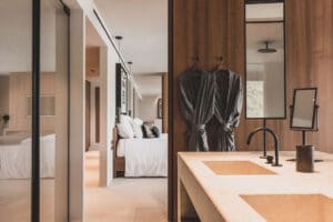 OKU Ibiza es un refugio de cinco estrellas en Sant Antoni de Portmany, diseñado para viajeros que buscan relajación y una experiencia con alma. Inspirado en el wabi-sabi, presenta un diseño minimalista con materiales naturales y tonos terrosos. Cerca de la bahía de Cala Gració, ofrece 185 habitaciones, una suite signature, una villa y una gran piscina. Incluye dos restaurantes: Teyo (fusión asiática) y To Kima (cocina mediterránea). El hotel promueve el bienestar con yoga, tratamientos de spa y experiencias fitness. Con música, el Missoni Resort Club y actividades al aire libre, combina lujo, relajación y naturaleza.