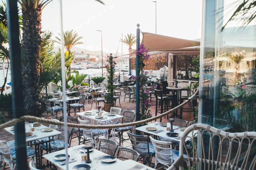 s a Mediterranean-inspired restaurant set in an elegant seafront villa along the promenade of Sant Antoni. It offers a unique atmosphere that blends refined style, stunning views of the bay, and a carefully curated menu based on local produce. Villa Mercedes creates a warm yet cosmopolitan setting, enhanced by live music that brings a vibrant and sophisticated energy. Whether it’s a romantic dinner, a group event, or a night out with friends, this is the ideal spot to experience the authentic spirit of Ibiza.