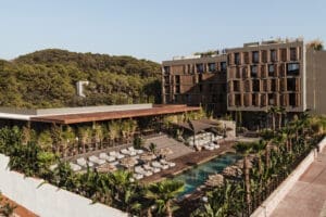 OKU Ibiza is a five-star retreat in Sant Antoni de Portmany, designed for relaxed, soulful travellers. Inspired by wabi-sabi, it features minimalist design with natural materials and earthy tones. Near Cala Gració bay, it offers 185 rooms, a signature suite, a villa, and a large pool. It includes two restaurants: Teyo (Asian fusion) and To Kima (Mediterranean). The hotel promotes wellbeing with yoga, spa treatments, and fitness experiences. With music, the Missoni Resort Club, and outdoor activities, it blends luxury, relaxation, and nature.